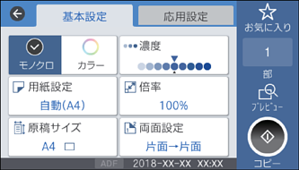 をタップすると、よく使うコピー設定をお気に入りに登録できます。