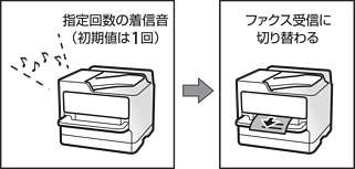 [呼び出し回数]で指定した回数の着信音が鳴り終わると、自動でファクス受信に切り替わります。