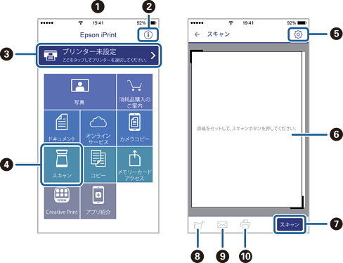 スマートデバイスでEpson iPrintを起動して、ホーム画面で使いたい項目を選択します。