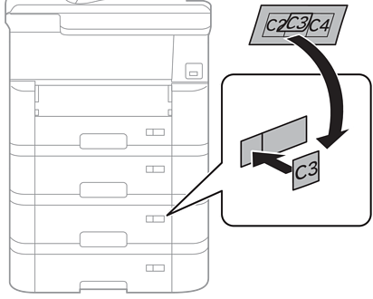 増設カセットユニットにセットする用紙サイズの用紙サイズラベルをホルダーに差し込みます。