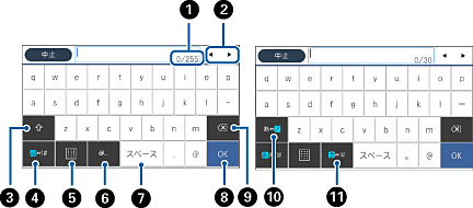 アドレス帳やネットワーク設定などでの文字や記号の入力は、文字入力画面で行います。