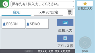• 常用登録した宛先を選択する:[宛先]タブに登録されている宛先を選択します。