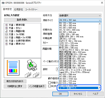 [基本設定]タブの[用紙サイズ]から[ユーザー定義サイズ]を選択します。