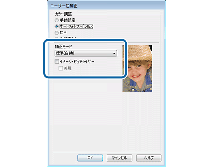 [手動設定]または[オートフォトファイン!EX]の各項目を設定して[OK]をクリックします。