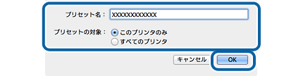 [プリセット名]を入力して、[プリセットの対象]を選択してから、[OK]をクリックします。
