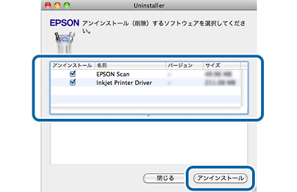 Uninstallerは、ご使用のパソコンにインストールされているエプソン製インクジェットプリンターのドライバーを全て削除します。