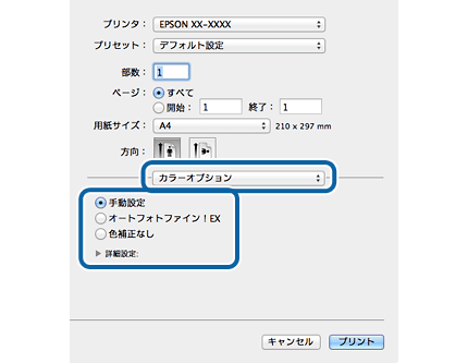 [手動設定]または[オートフォトファイン!EX]の各項目を設定して[OK]をクリックします。