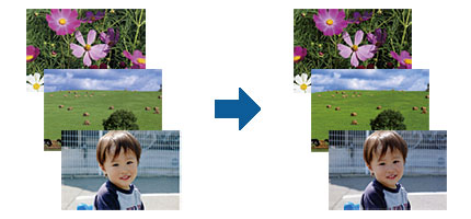 エプソン独自の画像解析/処理技術を用いて自動的に画像を高画質化して印刷できます。また、撮影シーン([標準][人物][風景][夜景])に合わせて最適に補正することもできます。