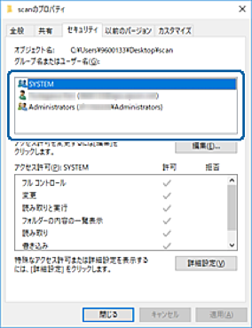 [グループ名またはユーザー名]にあるグループまたはユーザーを確認します。