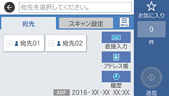 スキャンする前に送信先を確認できます。[設定]-[本体設定]-[スキャン設定]の順に選択し、[読み取り前宛先確認]を有効にしてください。