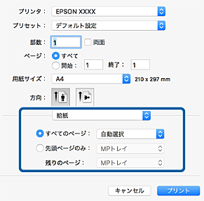 ページの給紙方法が選択できます。