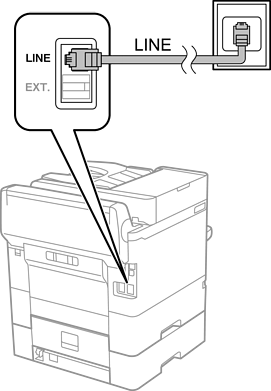電話回線やPBXポートと、プリンター背面部のLINEポートをモジュラーケーブルで接続します。