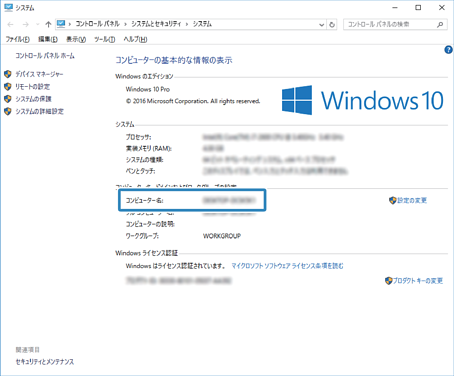 コンピューター名には半角英数字および半角記号を使用してください。ひらがな、カタカナ、漢字、全角英数字、全角記号が使用されているときはコンピューター名を変更します。管理者がいる場合、[コンピューター名]の変更は管理者に問い合わせてください。