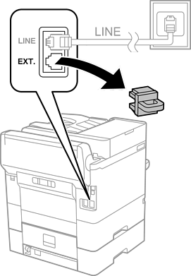 1つの電話回線で、ファクスと電話の両方を使用するときは、お手持ちの電話機を外付け電話機としてプリンターに接続します。