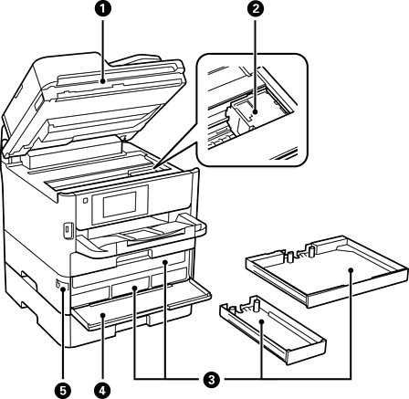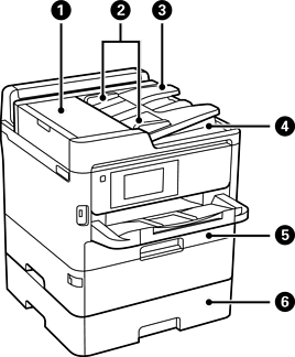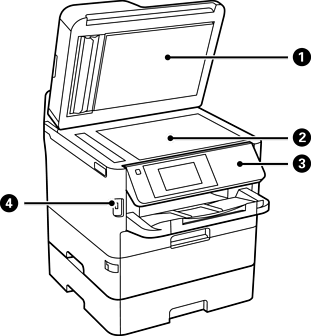 原稿をスキャンします。内部に詰まった用紙を取り除くときに開けます。 |