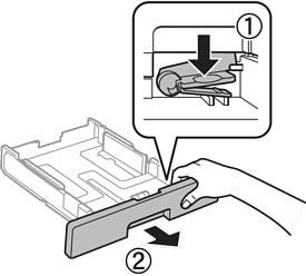 プリンターが動作していないことを確認して、用紙カセットを引き抜きます。