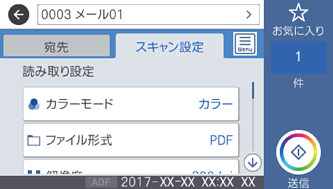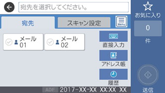 スキャンする前に送信先を確認できます。[設定]-[本体設定]-[スキャン設定]の順に選択し、[読み取り前宛先確認]を有効にしてください。