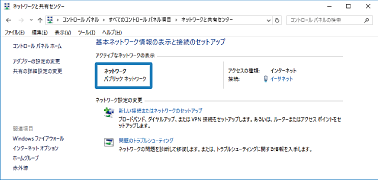 現在のネットワークの設定は[コントロールパネル]-[ネットワークと共有センター]で確認できます。