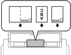 手差しトレイにセットするときは、印刷する面を手前にして中央にセットし、用紙ガイドをハガキに合わせてください。