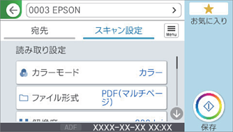 [スキャン設定]を選択して保存形式などの設定を確認し、必要に応じて変更します。