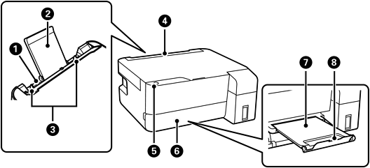排紙された用紙を保持します。手で引き出し、収納も手で押して戻してください。
