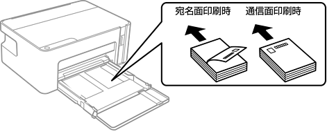ハガキをセットするときは、宛名面と通信面、郵便番号枠の向きに注意してください。