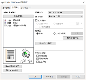 多用する設定の登録や削除ができます。登録した設定は、リストから選択することで使用できます。 |