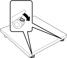 プリンター台を平らな場所に置き、前側のキャスター2箇所をロックします。