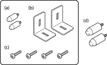 本製品では、以下の部品セットを使ってプリンター台を取り付けます。(d)の部品は本製品では使用しません。