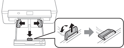 4用紙ガイドをいっぱいまで広げて、手前の用紙ガイドを倒します。