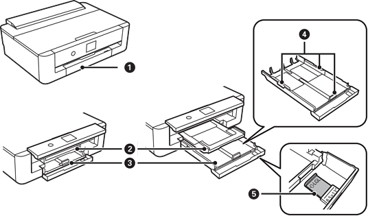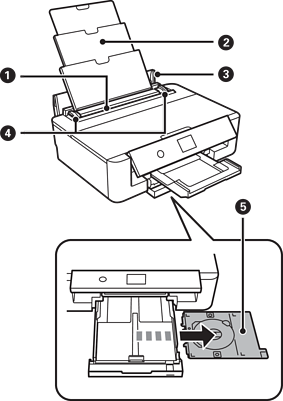 印刷された用紙を保持します。印刷を開始すると自動で出てきます。トレイの収納は、ホーム画面を表示してボタンを押します。