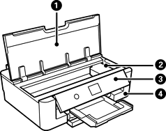 インクカートリッジの交換や内部に詰まった用紙を取り除くときに開けます。
