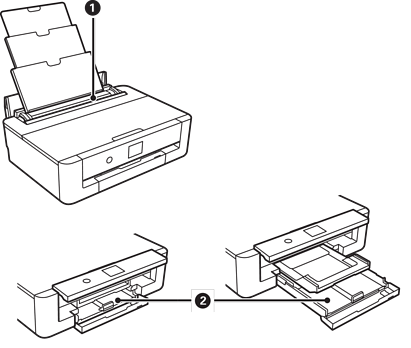 本製品は2つの給紙装置があります。用紙サイズや印刷用途に合わせて用紙をセットしてください。