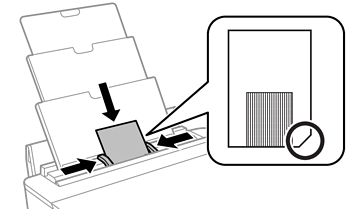 5クリーニングシートのコーナーカット(切り欠け部)を右下にして、背面トレイにセットします。用紙ガイドを用紙の側面に合わせます。