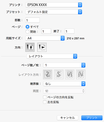 データを180度回転して印刷します。用紙の向きを変えられないハガキや封筒に印刷するときに設定してください。