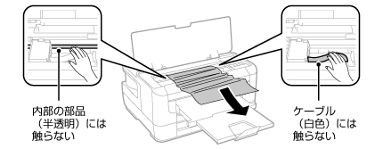 キャリッジ(インクカートリッジセット部)横のケーブル(白色)には絶対に触らないでください。