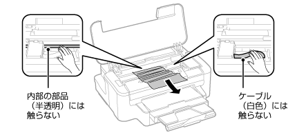 キャリッジ(インクカートリッジセット部)横のケーブル(白色)には絶対に触らないでください。
