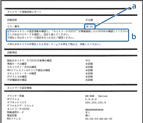 ネットワーク接続診断レポートのメッセージとエラー番号を確認して対処してください。