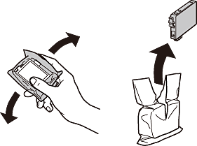 新しいインクカートリッジを4~5回振った後、袋から出します。