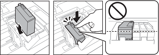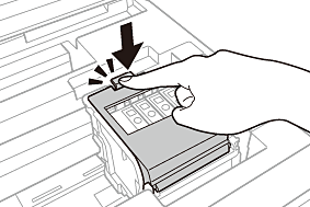 新しいインクカートリッジを挿入して、[押]の部分をしっかりと押し込みます。