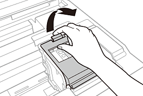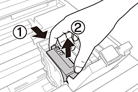 交換するインクカートリッジのフックをつまみ、真上に取り出します。外れないときは、強く引き抜いてください。