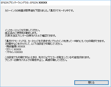以下の画面が表示されたら[黒だけで印刷]を選択します。