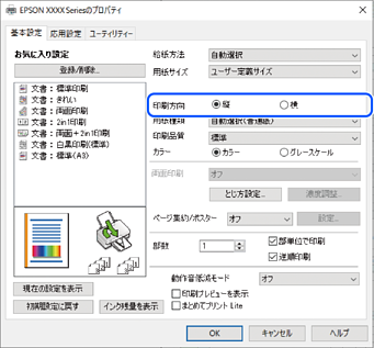 [基本設定]タブの[印刷方向]から印刷の向きを選択します。