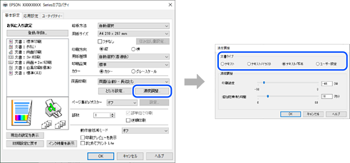 [濃度調整]をクリックし、文書タイプを選択して[OK]をクリックします。
