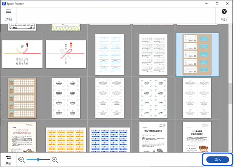 値札、ポイントカード用のテンプレートを選択して、[次へ]をクリックします。