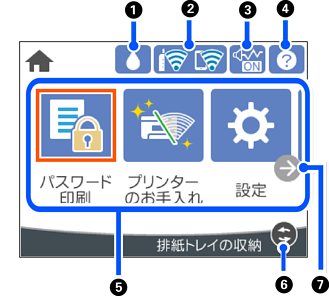 ヘルプ画面を表示します。困ったときの対処方法やプリンターの基本操作手順が確認できます。 |