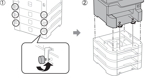 準備を行った後に、用紙カセット1~4を引き抜きます。その後、以下の手順に従ってください。