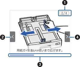 この画面の例では、全4手順中の2番目の手順を表示していることを示します。