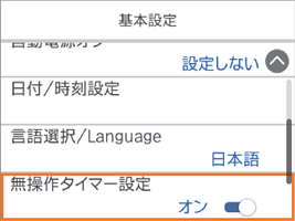 ボタンで設定項目までフォーカスを動かし、OKボタンでオンとオフを切り替えます。