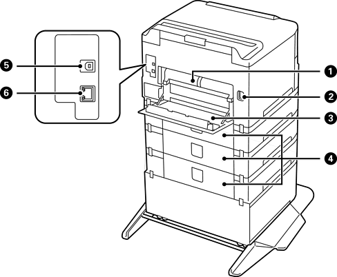 給紙ローラーの交換や内部に詰まった用紙を取り除くときに開けます。